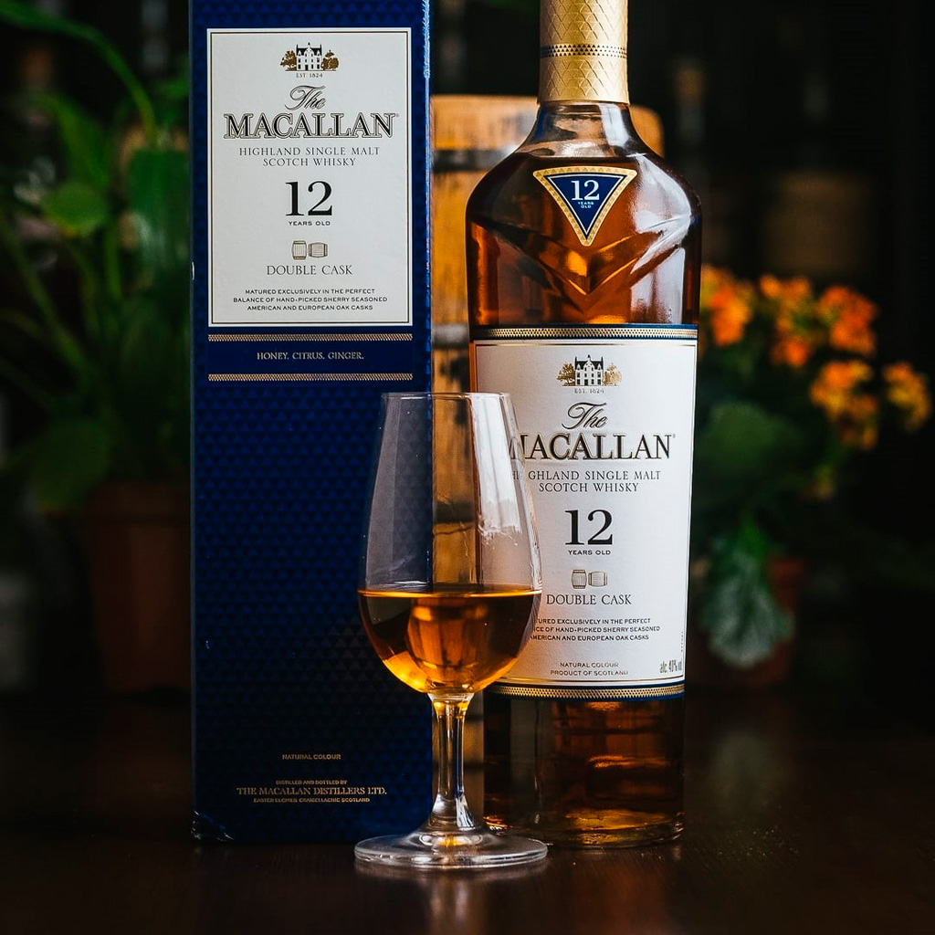 O delicado sabor do carvalho americano - baunilha, cítricos e carvalho claro - destaca-se pelo caráter tradicional de carvalho europeu Macallan de frutas secas, xerez e especiarias de madeira que proporcionam uma base familiar. Adequado para todas as ocasiões, Double Cask 12 Years Old irá agradar tanto aos bebedores existentes como aos novos do Macallan. O caráter fresco e acessível de Double Cask 12 Years Old também serve como o complemento perfeito para o seu contraparte um pouco mais robusto, o Sherry Oak 12 Years Old.Características: