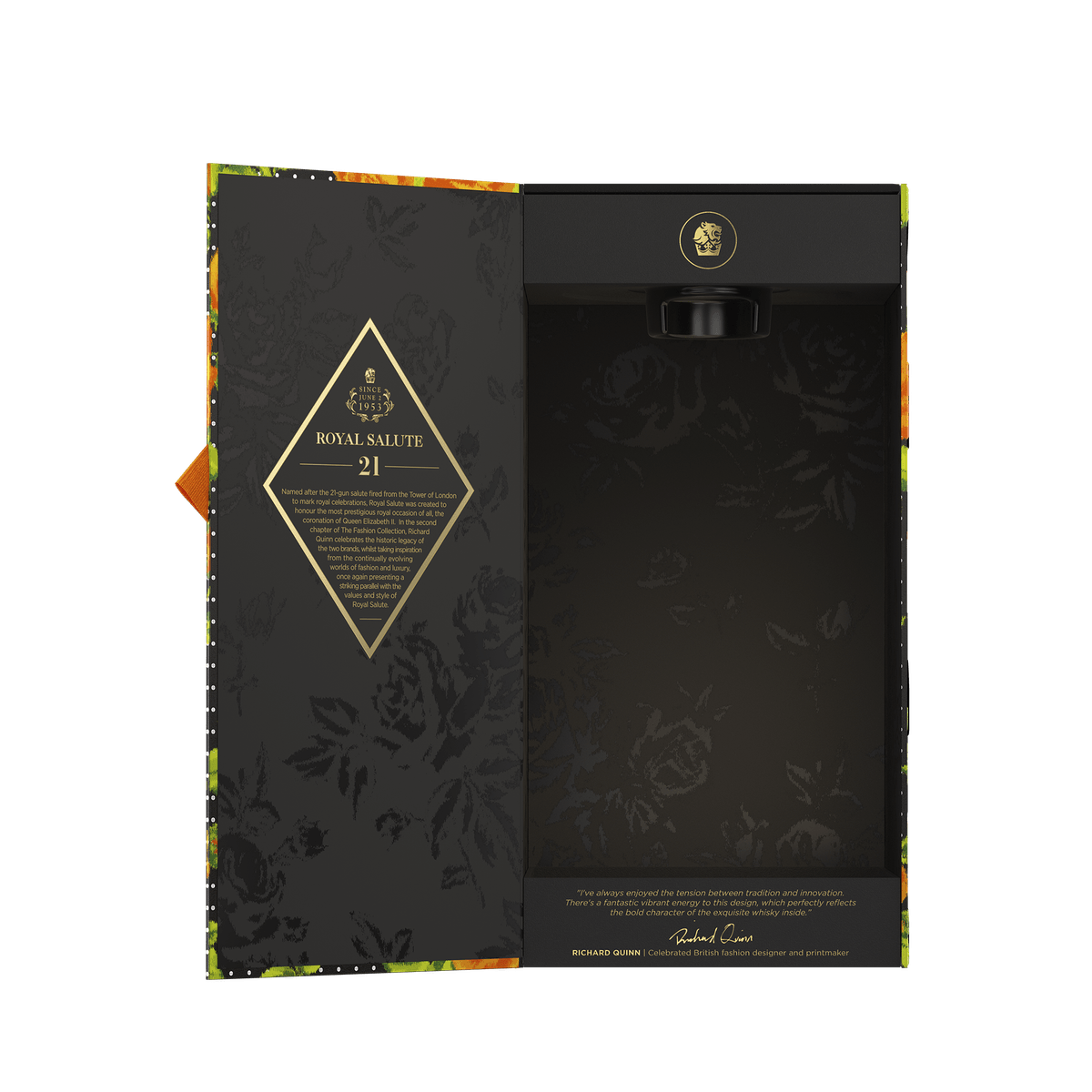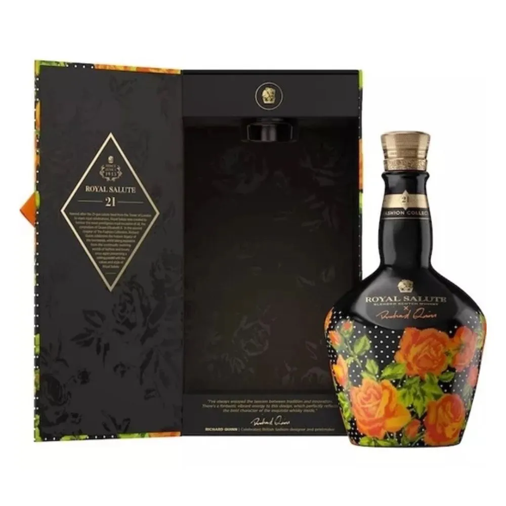 Royal Salute estreia sua segunda incursão na arte da “alta costura” com o alto nível de nossa “arte do blend”. O segundo ano do ousado passo de Royal Salute no mundo da moda continua em mais uma colaboração com Richard Quinn, o estilista ascendente, trazendo duas estampas para novas garrafas de edição limitada e um novo blend floral. Esse blend de 21 anos foi meticulosamente co-criado pelo Master Blender de Royal Salute, Sandy Hyssop, e pelo próprio Richard Quinn na destilaria de Strathisla, na Escócia. Cuidadosamente selecionados a partir de uma variedade dos melhores whiskies escoceses, esse blend personalizado apresenta notas ricas de frutas com toques de especiarias e características sutis de defumação. O Whisky Royal Salute 21 Anos – The Richard Quinn Edition Orange Rose Escocês 700ml possui uma graduação alcoólica de 40%. É proibida a venda e o consumo de bebidas alcoólicas para menores de 18 anos. Se beber não dirija.